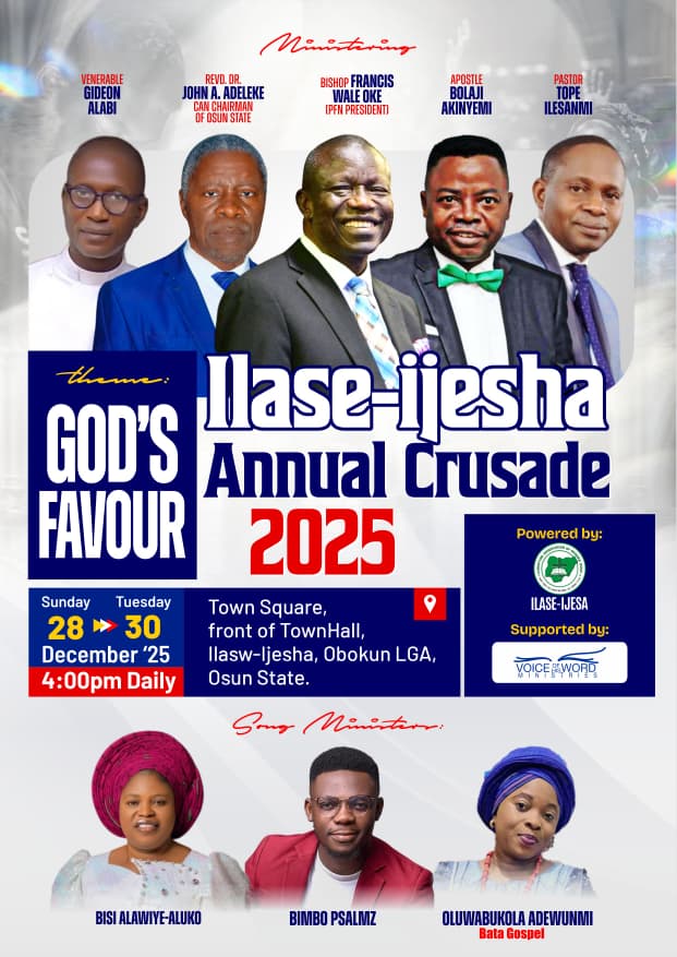 This year’s crusade will be headlined by Bishop Francis Wale Oke, President of the Pentecostal Fellowship of Nigeria (PFN), who will lead other anointed ministers of the Gospel in praying and speaking blessings over the people, the land, Osun State, and the nation, Nigeria.