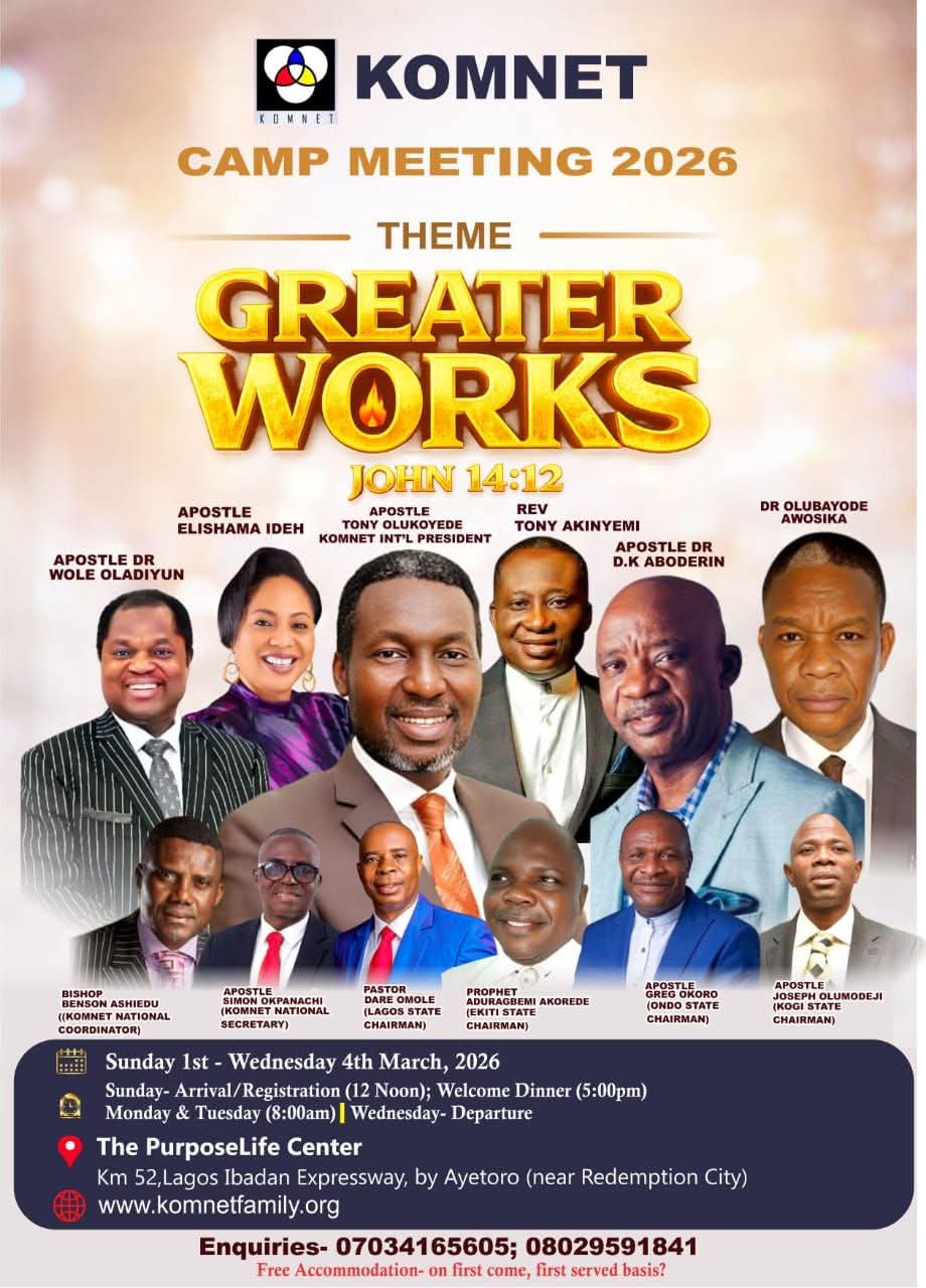 Reflecting on past camp meetings, the bishop noted that: “Past KOMNET camp meetings have been rewarding and impactful, giving direction and courage to pursue the call. They also provided opportunities for international exposure. The ministry has become stronger and more established. We give thanks to the Lord. This 2026 edition is expected to take us to the next level of ministry and deeper exposure to the ocean of Greater Works.”